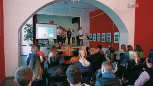 У среду, 10. 05. у свечаној сали школе одржана је трибина – Стоп вршњачком насиљу. Трибину је отворила директорка Гордана Лекић, а водиле су Виорика Старовић, психолог школе и Ивана Јовановић, педагог школе уз подршку Ученичког парламента. Трибини су присуствовали ученици, њихови родитељи и професори школе.