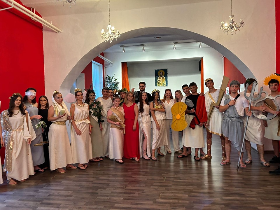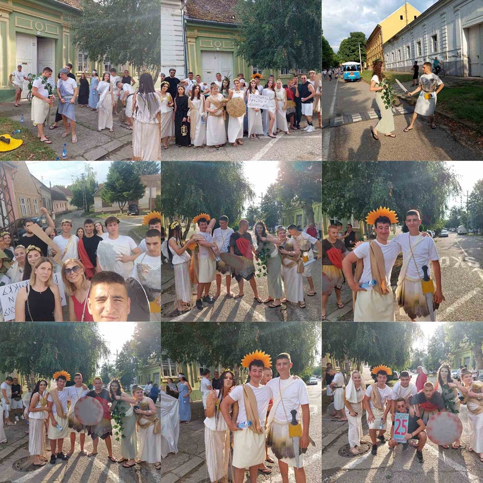 Њих двадесетчетворо су представљали грчке богиње, богове и хероје, као симболе лепоте, љубави, храбрости, правде, борбености и победе, управо онога по чему се и препознају ученици наше школе.