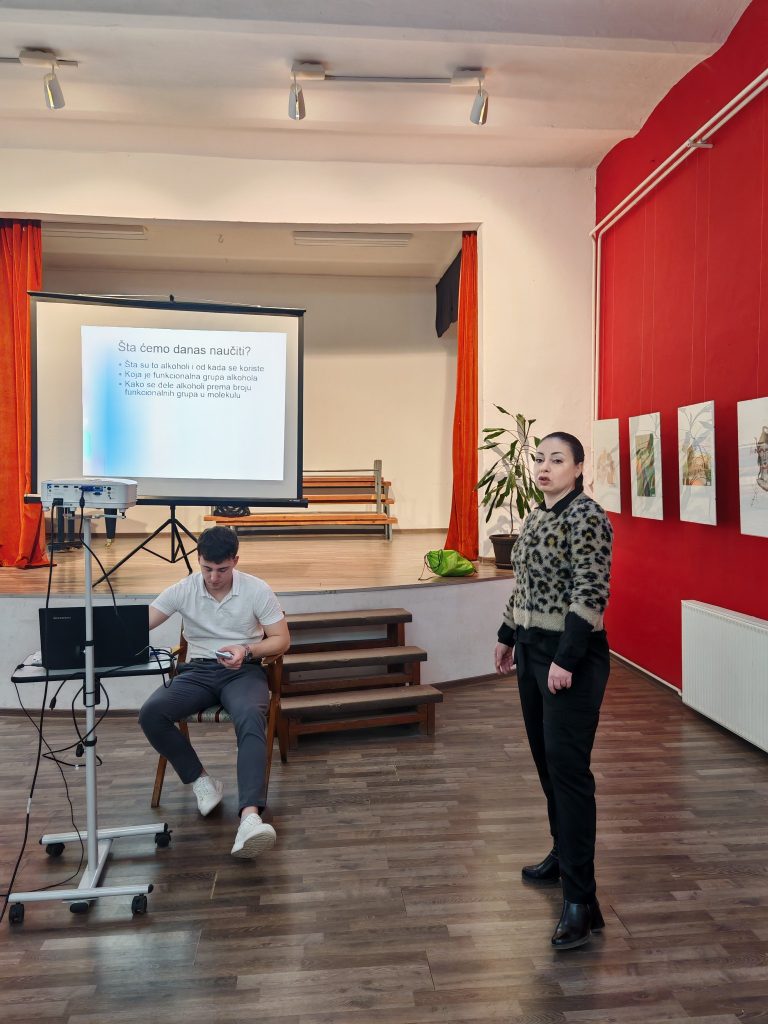 У првом делу предавања професорка је упознала ученике о историји алкохола и хемијским особинама алкохола.